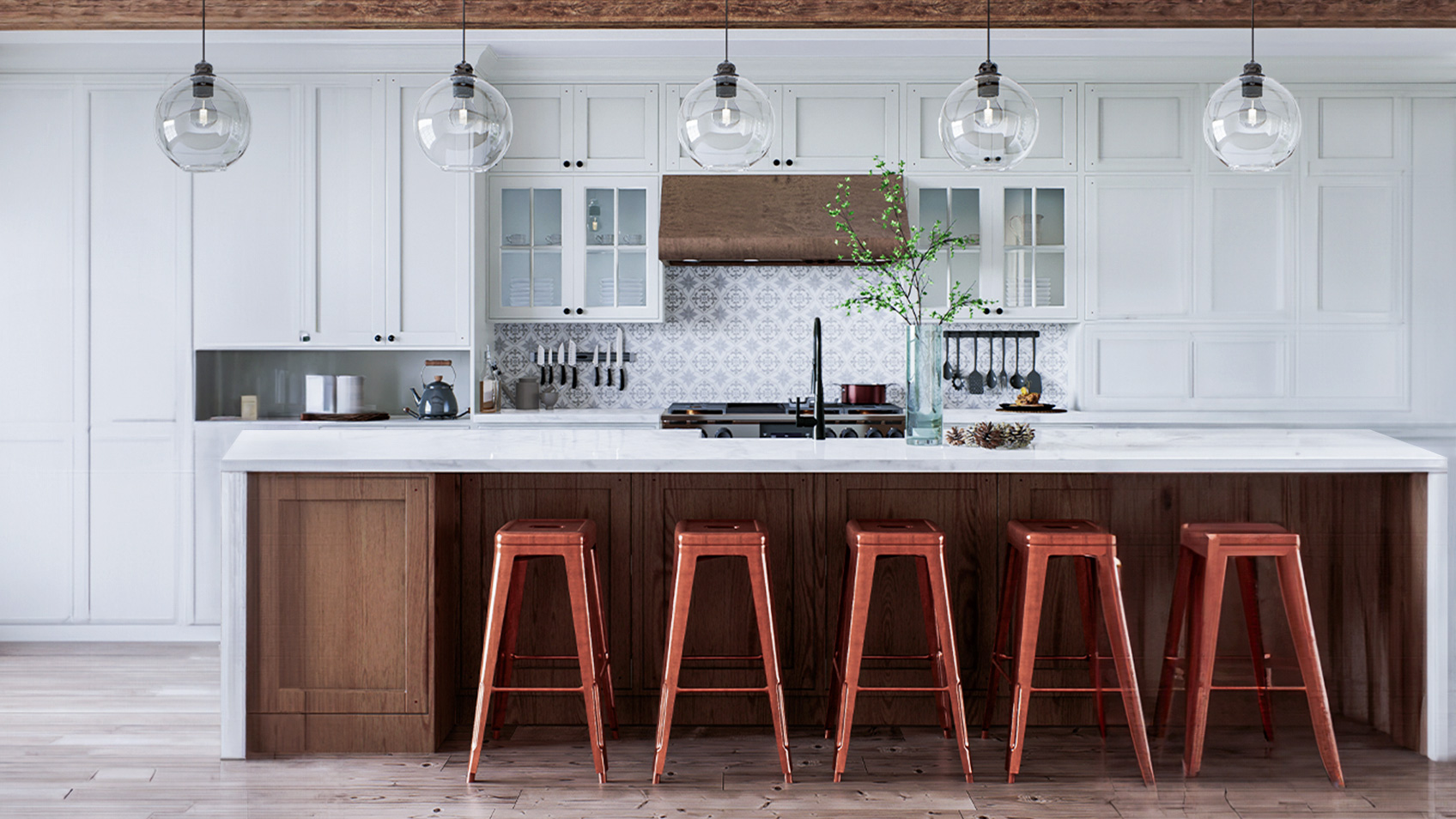 Модерн — направление в дизайне, которое характеризуется природными мотивами, натуральными мягкими оттенками и плавными изогнутыми линиями предметов. Выполнить кухню в таком стиле — задача не из простых, но специалисты нашей компании обожают выполнять сложные проекты.